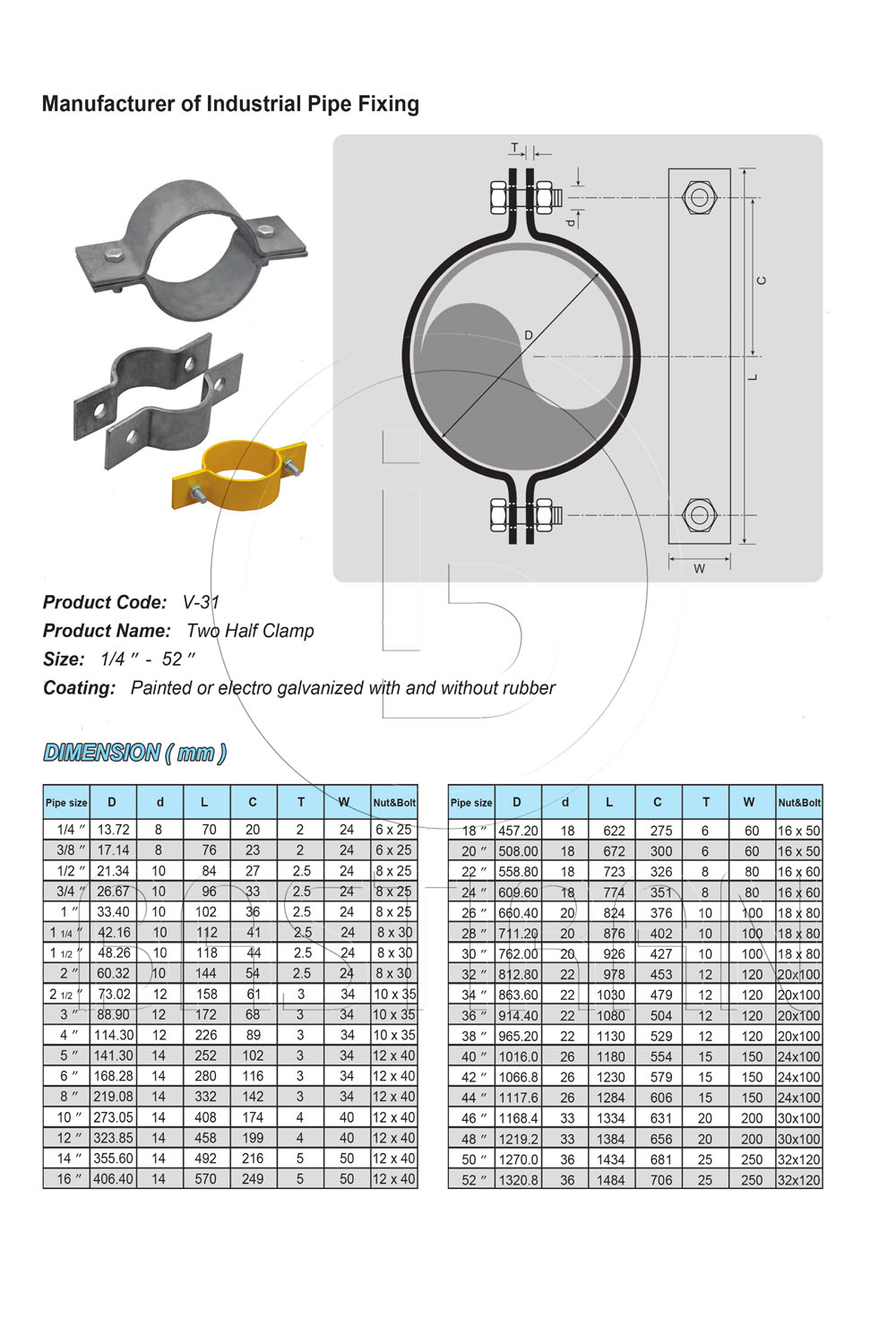 بست دوتکه دوقلو با پایه H از سایز ۸ الی ۳۶ اینچ تولید می گردد.